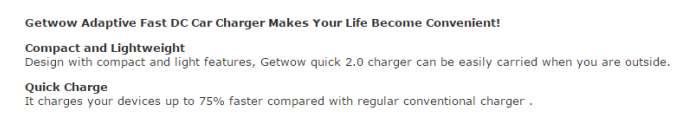 <b>Getwow Adaptive Fast DC Car Charger Makes Your Life Become Convenient! </b> <br> <p>