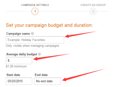 (2)设置活动名称、每日预算和起始日期